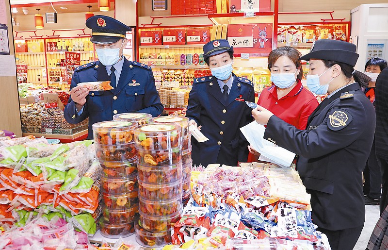 近日,北京市东城区市场监管局对辖区校园周边以及旅游景区等重点区域的小食杂店在售的食品开展执法检查,确保没有来源不明、无中文标识、超过保质期限、腐败变质等食品。执法人员要求经营者严格把好食品安全关,落实好定期自查和索证索票工作,杜绝一切来源不明食品、“三无”食品、过期食品。 本报记者董芳忠摄影报道