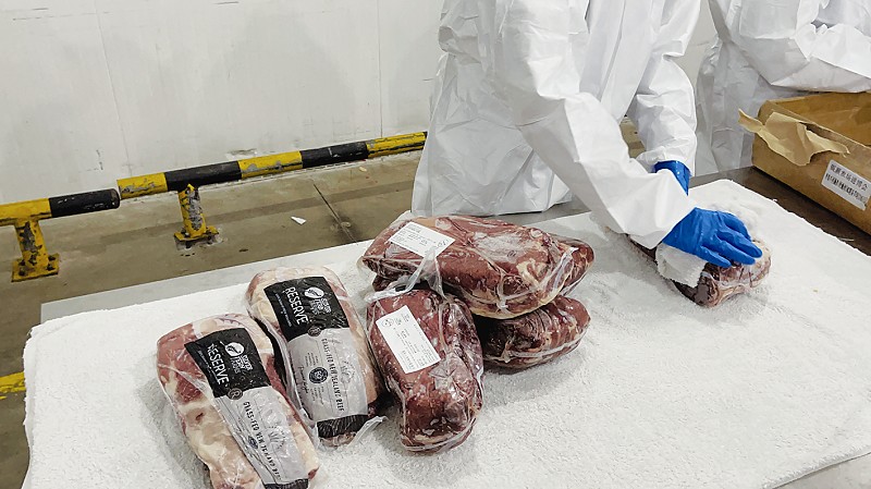 记者了解到,今年,根据一般贸易展品和展览品贸易展品的风险高低,其消毒和核酸检测要求分为两条流水线。对于展览品贸易展品需要对外包装消毒和核酸检测,合格后再进行小包装消毒和核酸检测。只要外包装或小包装核酸检测阳性,都必须按规程作无害化处理。而一般贸易展品,因其前期进入国内时已进行外包装消毒和核酸检测,因此仅需对食品小包装再进行消毒和核酸检测。而对食品核酸抽样要求覆盖每一个批次,实现100%检测。在进馆前,由市场监管部门贴上食品封签,由指定的统一物流企业将消毒和核酸检测合格的进口冷链食品展品运输入馆。