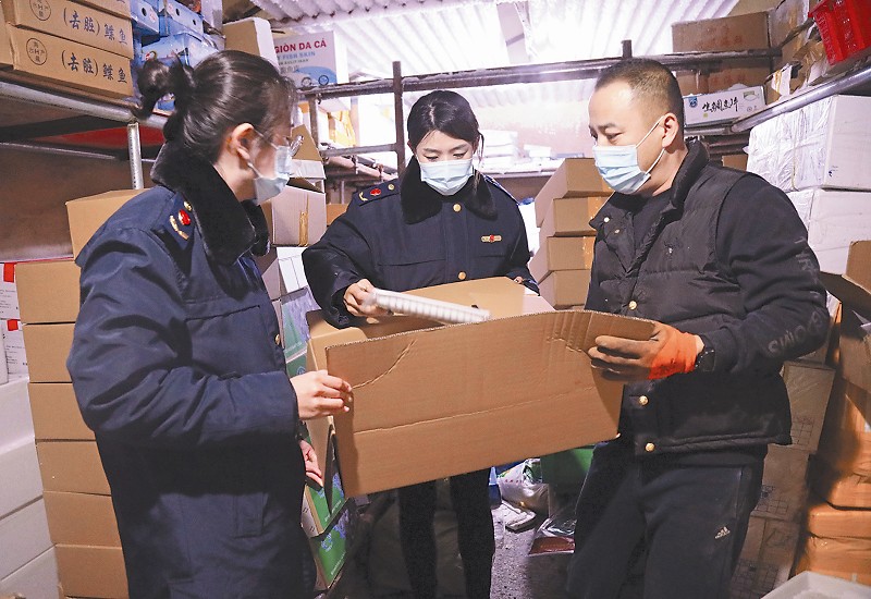 为扎实做好新形势下疫情防控工作,筑牢冷链食品疫情防控屏障,近日,山东省威海市环翠区市场监管局开展了进口冷链食品经营单位“八不”行为专项检查。执法人员以辖区第三方冷库为重点区域,围绕“山东冷链”注册使用、索证索票制度落实等情况进行检查,同时,督促经营单位严格落实主体责任,守住冷链食品风险防控底线。