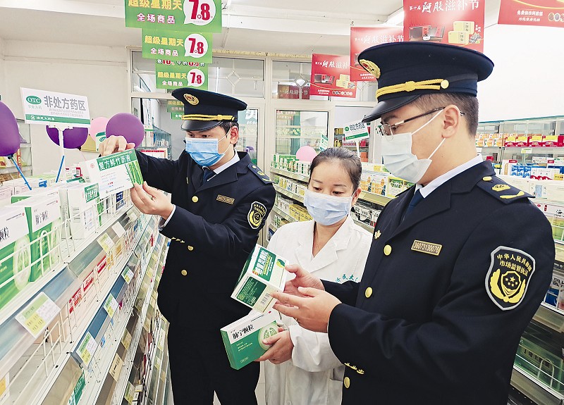 近日,江西省于都县市场监管局开展流通环节药品专项检查。执法人员重点查看了药品经营单位经营的药品购销存记录、票据、凭证,并对零售药店是否按要求配备执业药师、执业药师是否在岗执业、是否按规定销售处方药等进行全面检查,确保群众用药安全。 王雨林摄影报道