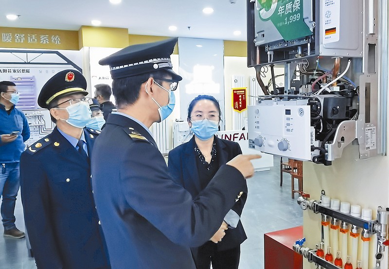 为保证消费者度过一个安全温暖的冬天,近日,北京市石景山区市场监管局对销售暖气片和取暖设备企业开展执法检查。执法人员重点查看了各取暖设备销售商家的主体资质、明码标价情况、产品质量、广告宣传等项目,未发现有销售不合格产品等违法问题,经营状况较好。图为执法人员在现场检查。 本报记者董芳忠摄影报道