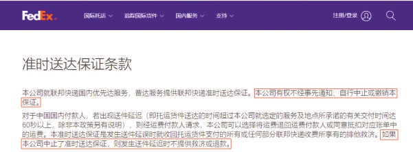 图:联邦快递准时送达保证条款。