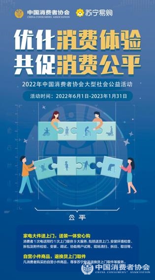 在当下消费场景中,消费者不仅关注产品质量,更加注重购物体验。2022年,中国消费者协会举办“优化消费体验共促消费公平”大型公益活动,苏宁易购集团股份有限公司(以下简称“苏宁易购”)在活动期间(2022年6月1日到2023年1月31日)围绕提升消费体验,扩大送装及退换货服务范围,为消费者营造更加舒适便捷的购物体验。